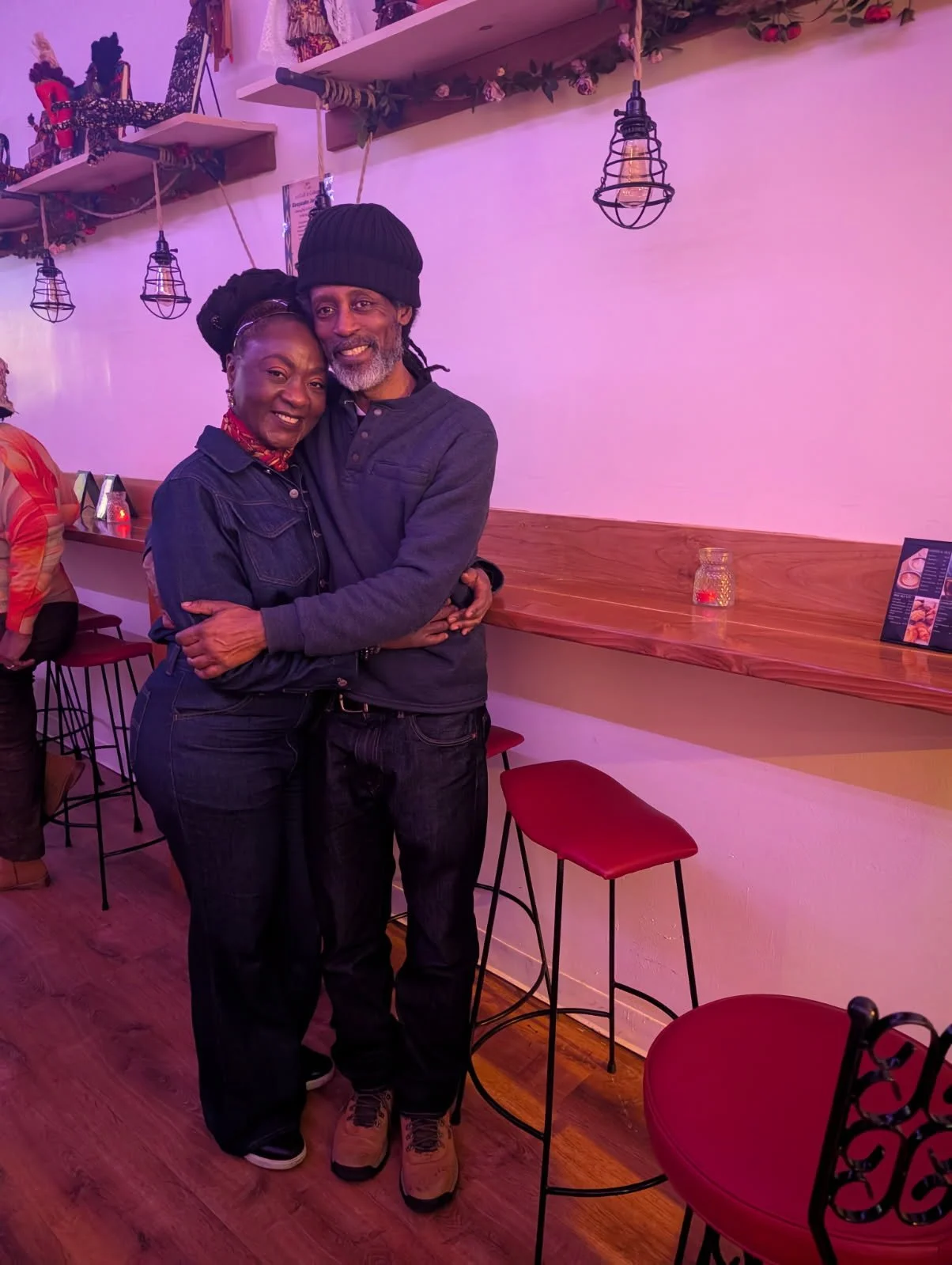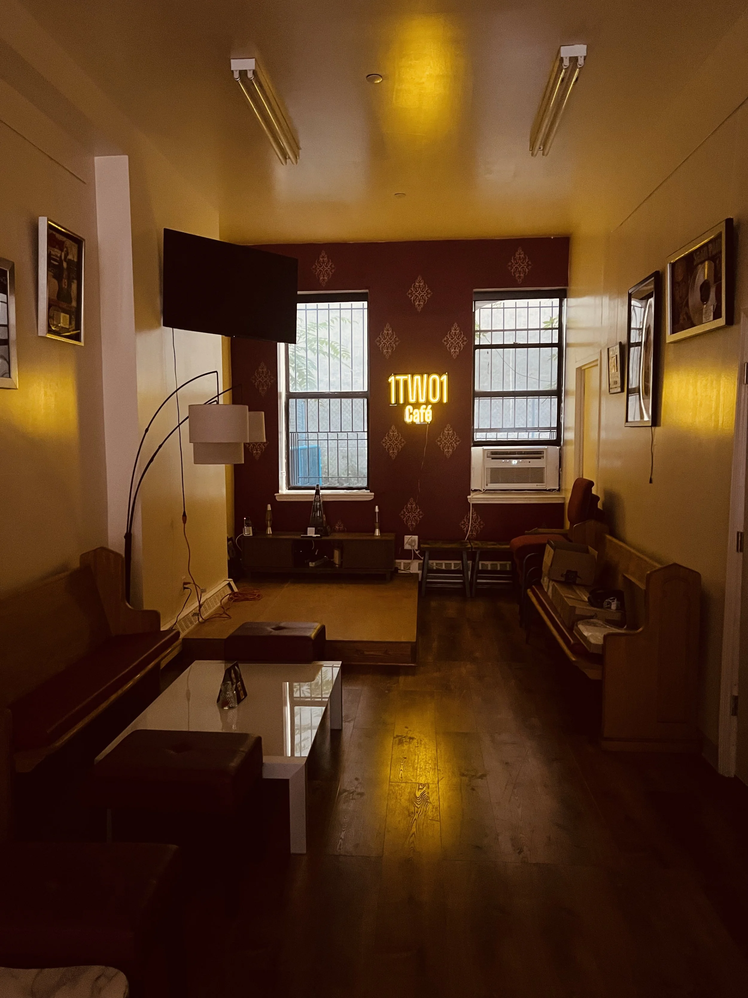 Eric, a lifelong musician and Emilienne had long dreamed of a space that would feel like a living room for their Bed-Stuy neighborhood — warm, inclusive, and soulfully curated. That vision came to life in 2024 when they opened OneTwoOne Café: a café, art gallery, and performance venue in one.